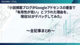 コラム:『小説掲載ブログがGoogleアドセンスの審査で「有用性が低い」とフラれた理由を、現役SEがデバッグしてみた』全記事まとめ