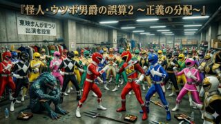 悪の怪人・ウツボ男爵がワープで強襲した先は、正義の戦士200人が集う「春の合同ファン感謝祭」の控室だった――。