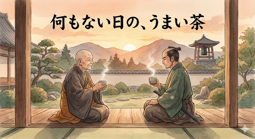 和尚様は、湯飲みの湯気をふわりと吹き、穏やかな目で侍を見つめました。