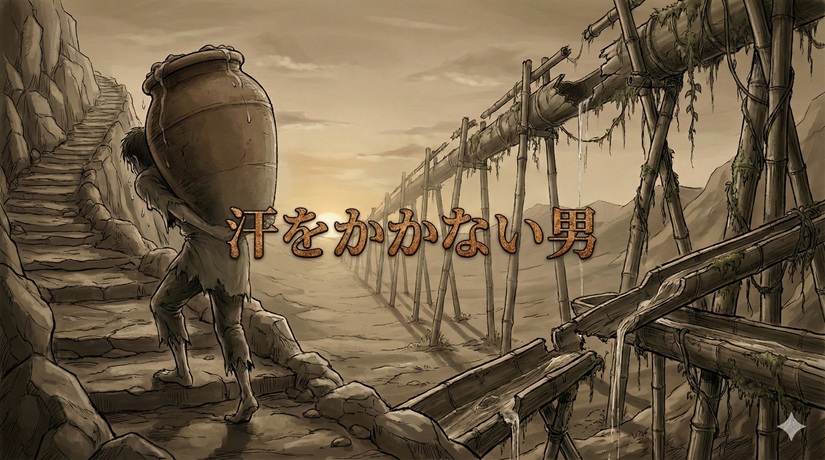 彼は誰よりも真面目でした。人一倍大きな水瓶を背負い、一日に十往復もします。足はマメだらけ、肩は血がにじんでいますが、彼は笑顔でした。