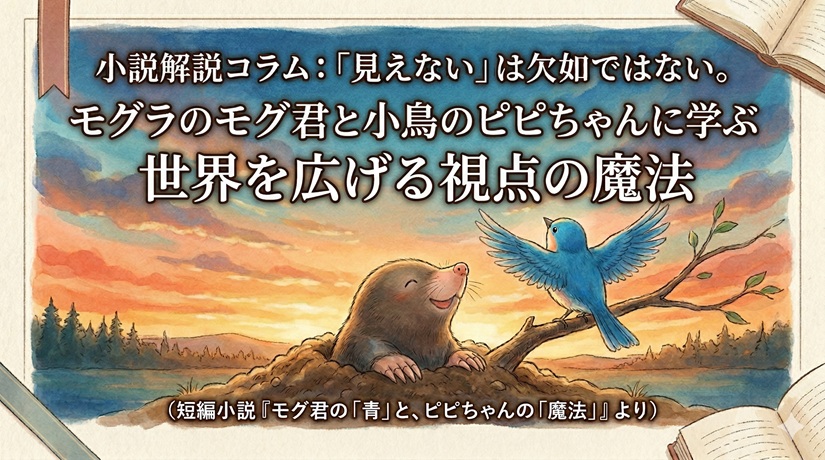小説解説コラム:「見えない」は欠如ではない。モグラのモグ君と小鳥のピピちゃんに学ぶ、世界を広げる視点の魔法(短編小説『モグ君の「青」と、ピピちゃんの「魔法」』より)